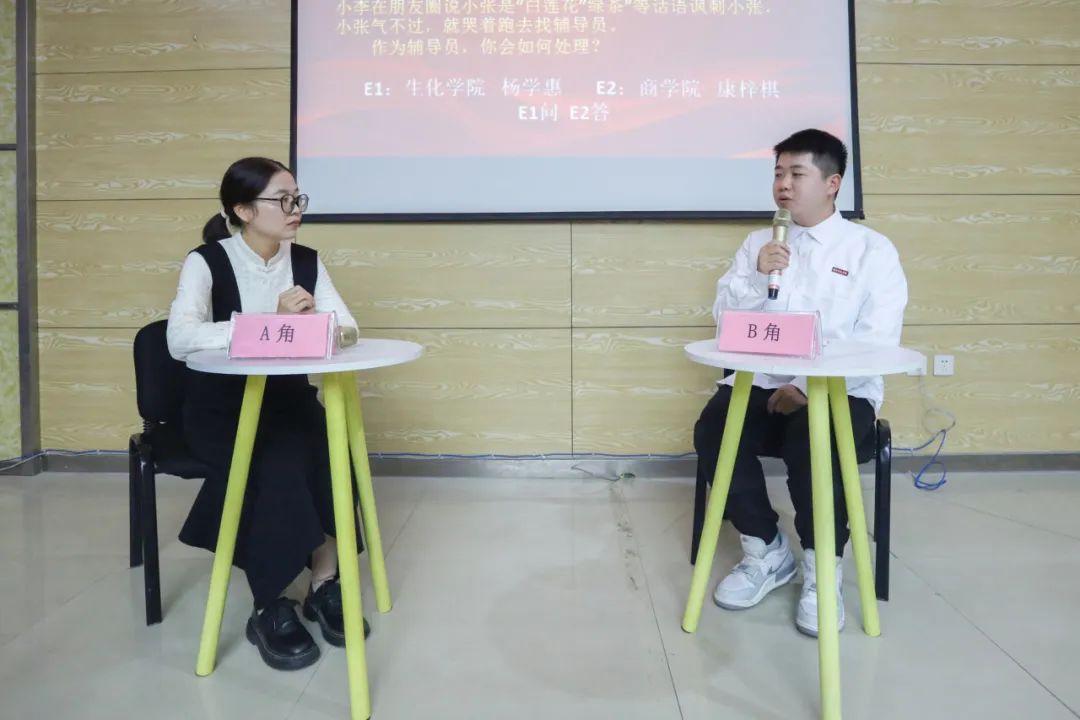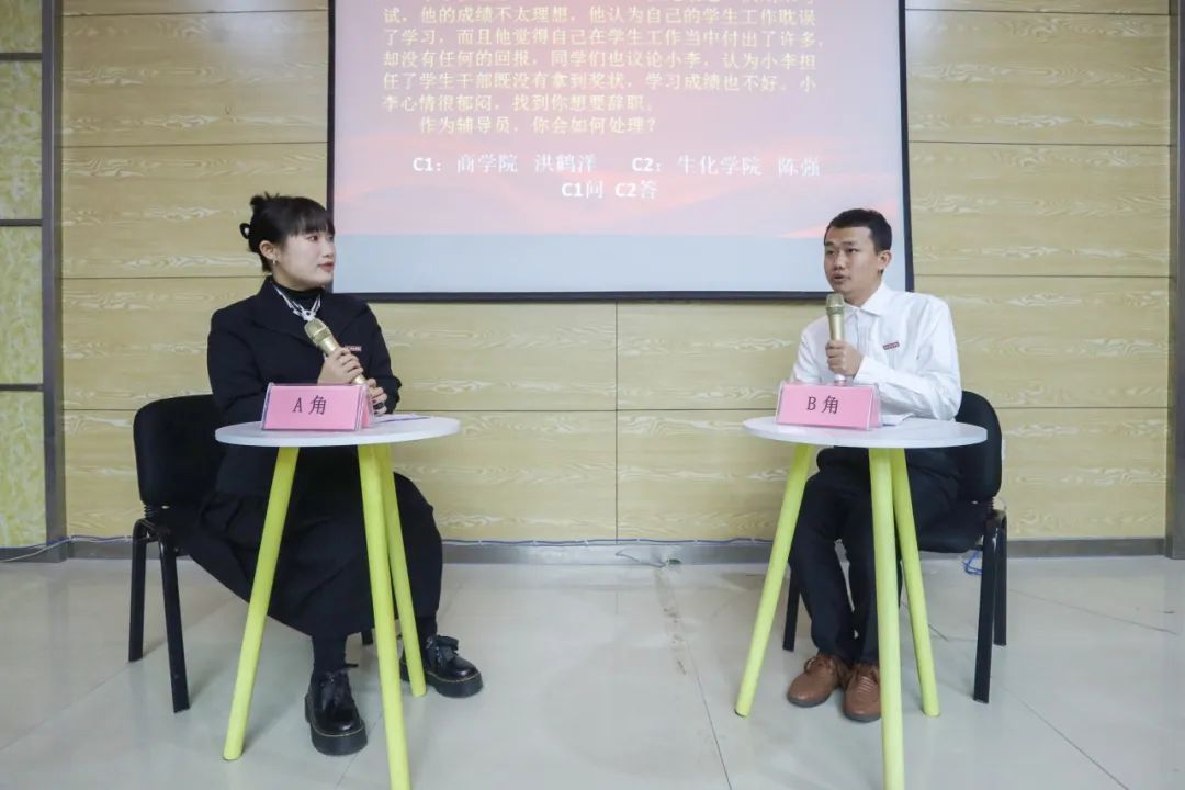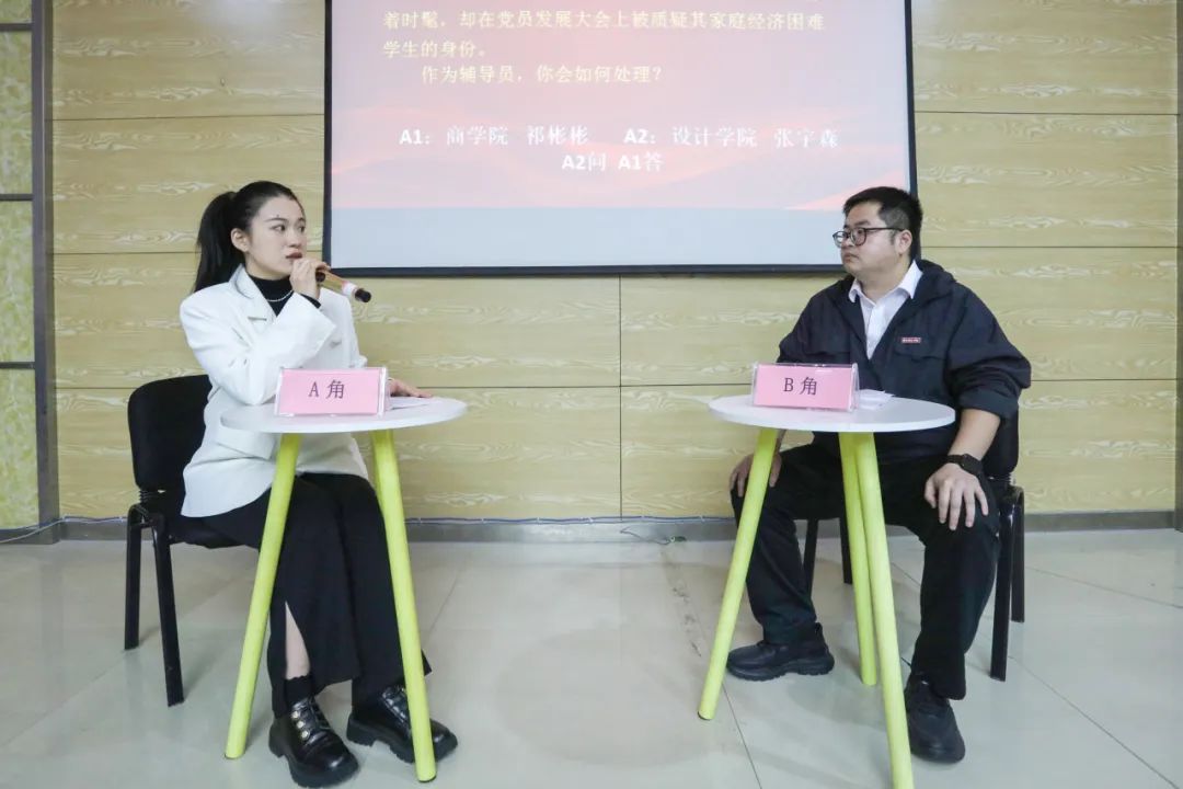 在案例研讨环节中,由随机抽签的同组AB角色两位辅导员,以“我提问,你回答”的方式,围绕案例共同辨析原因、研讨对策、总结规律。参赛辅导员结合自身工作实际,研判案例的重难点,从案例中探求解决思路、凝练解决方法,展现了开云唯一官网_开云(中国)辅导员良好的精神面貌和逻辑思辨能力。