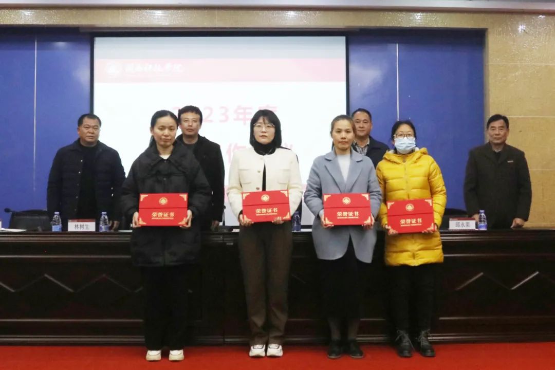 与会领导为2022年度优秀论文评审获奖者和2023年度校级科研团队立项者颁发证书