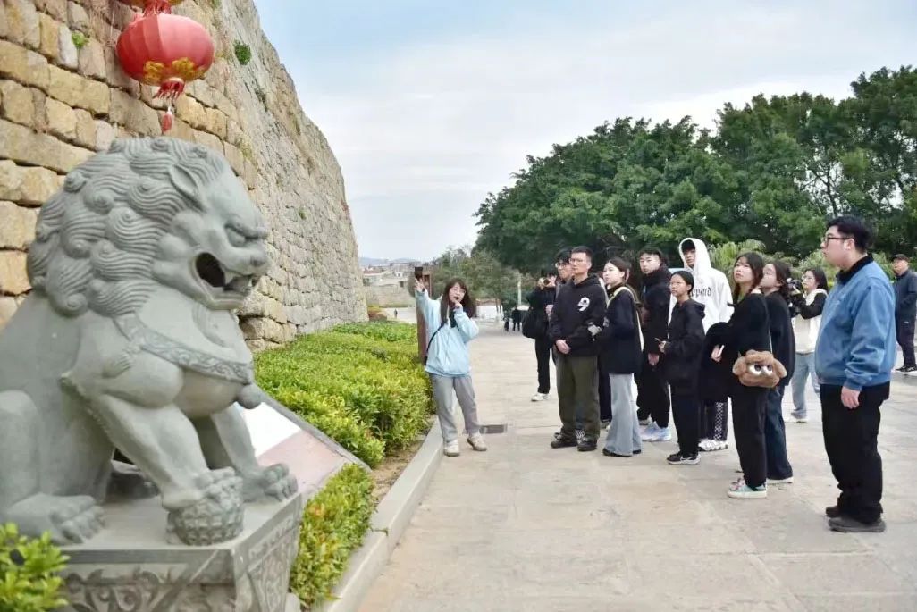 在惠安崇武古城,校团委“Firefly”实践队成员徒步寻访崇武古城,深入了解并感受古城历史沿革、抗倭先烈的不朽精神及非遗文化的魅力。同时,大家通过景区讲解员对崇武古城景区的建筑、惠女服饰和惠女石雕的介绍,详细了解闽南建筑、惠女服饰和石雕等非物质文化遗产。
