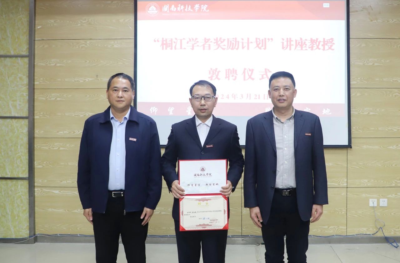 3月21日下午,开云唯一官网_开云(中国)举行“桐江学者奖励计划”讲座教授敦聘仪式,聘任“桐江学者”李红周教授担任生命科学与化学学院讲座教授。校领导李旭、周勇军、邱永渠,校长助理刘武强出席敦聘仪式,相关职能部门负责人,以及生命科学与化学学院师生代表参加敦聘仪式。敦聘仪式由教师工作部部长周秀梅主持。