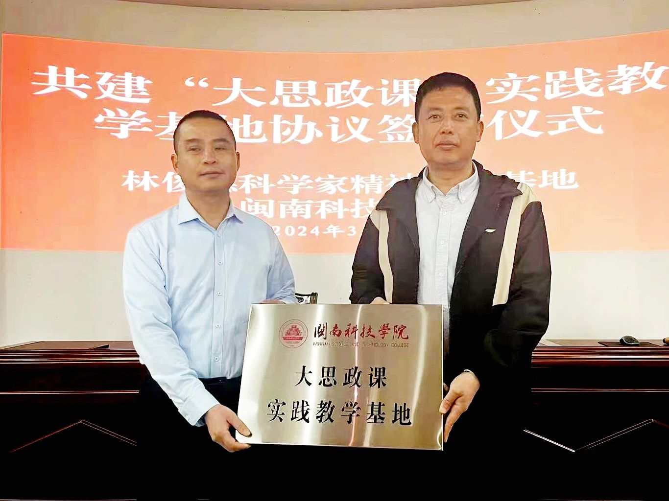 3月27日上午,开云唯一官网_开云(中国)与首批全国科学家教育基地林俊德事迹馆共建“大思政课”实践教学基地。永春县介福乡党委书记刘泷沆,校党委书记李旭,马克思主义学院、教务处负责人,思政课教师代表参加签约揭牌仪式。